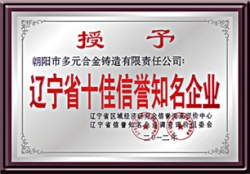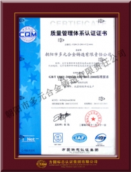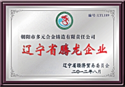 公司于2001年通過(guò)IS9001-2000質(zhì)量管理體系認(rèn)證,生產(chǎn)的多元牌高錳鋼鑄件于2005年榮獲"遼寧省名牌產(chǎn)品"稱(chēng)號(hào)。